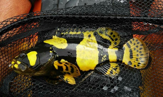 Juveniles grey with small dark spots and faint black and yellow banding on dorsal surface. Adults can grow to great sizes and have a large mouth and small eyes. Grey in colour with mottled brown body. Read more…