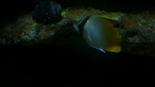 Juvenile Chaetodon auriga (Threadfin Butterflyfish) hanging around rock crevices