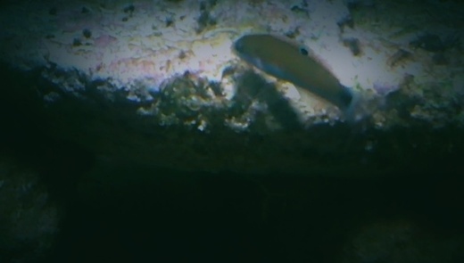 Juveniles have a greenish brown upper body with blue underside. Faint pink and purple irregular bands adorn the face. A black spot is found on the dorsal fin and another near the base of the tail. Caudal and anal fins are transparent. Adults have a green to blue body with bright pink bands in irregular patterns on the face. The caudal fin is yellow in the centre, darker on the edges and moon shaped. The pectoral fins are elongated, pink in the centre and fringed in blue. Scales have faint pink edges. Some individuals have pink markings along the dorsal fin tips. Read more…
