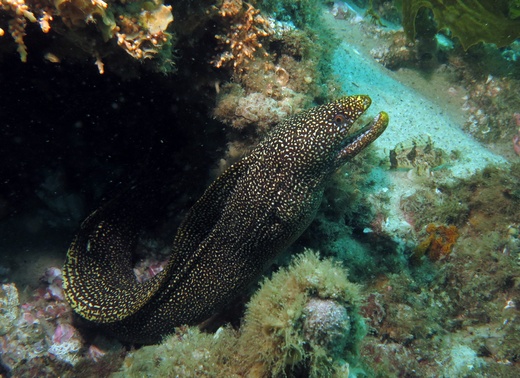 Brown body with small irregular shaped yellow to white spots covering every surface. Some individuals also have small black spots. The body colour gets darker further away from the head due to the presence of more markings. Read more…