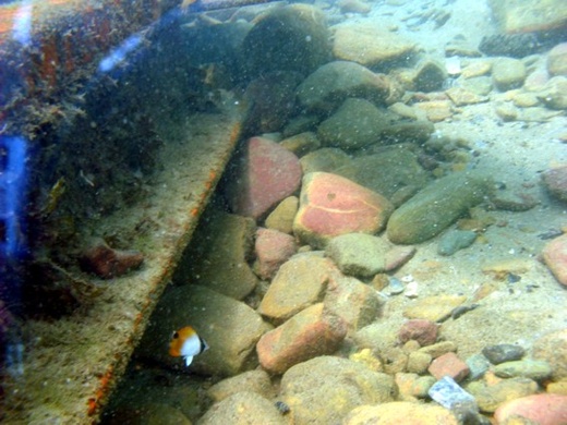 A tiny juvenile Threadfin Butterflyfish