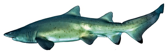 Large sluggish sharks that are usually seen swimming near the bottom, often in sandy gutters, under large overhangs or in large caves. Once common along the south coast, Grey Nurse sharks all but disappeared as a result of overfishing, including spear-fishing. Although generally considered harmless, can be dangerous if provoked.
