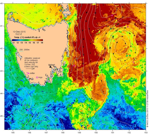 The East Australian Current, or EAC for short, is a strong seasonal ocean current that brings warm water down the east coast of Australia, as far south as Tasmania over the warmer months. It’s because of the EAC that water temperatures off the east coast tend to be warmer than the rest of the state. Some years this current is particularly strong, such as in the summer of 2015/16 when the waters off eastern Tasmania were extremely warm – so warm in fact that even the swimmers and surfers noticed it. Waters were three degrees warmer than usual, so it would be hard not to notice!