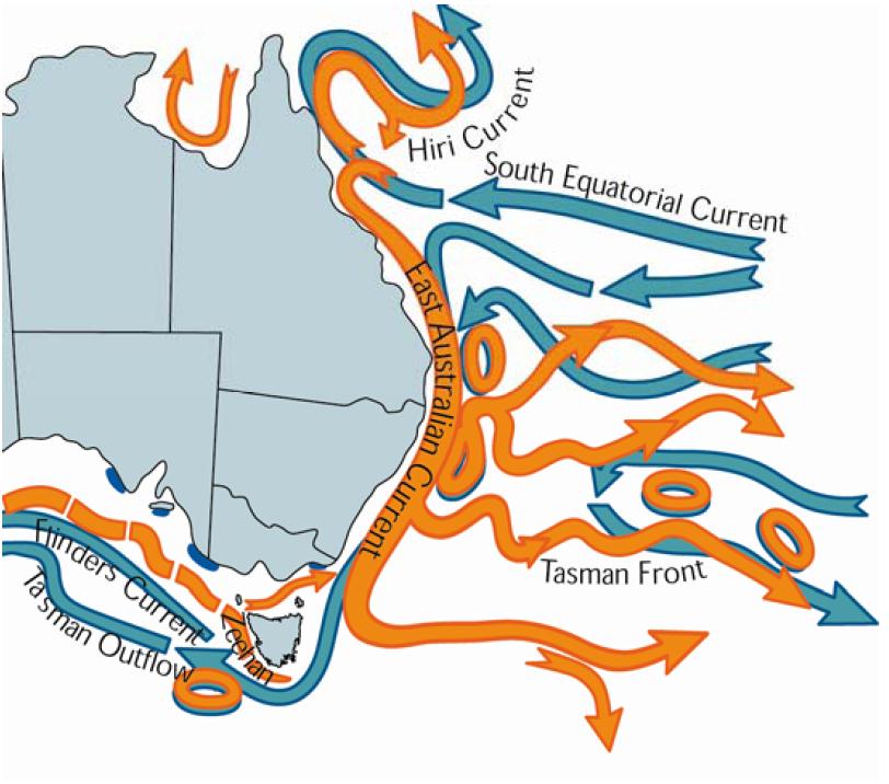 Above: the system of currents along Australia’s eastern coastlines (CSIRO).
