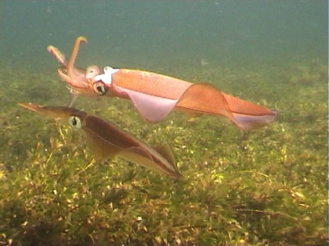 Reference: Jantzen, TM & Havenhand, JN. (2003). Reproductive behaviour in the squid Sepioteuthis australia from South Australia: interactions on the spawning grounds. Biol. Bulletin, 204: 305-17.