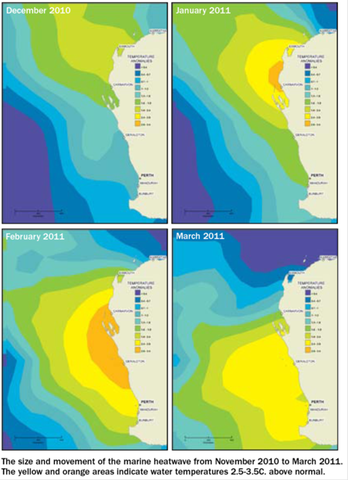 Ocean temperatures rose to unprecedented levels along the west and south coasts of Western Australia during February and March 2011. A scientific workshop was held in May 2011 to compile the oceanic processes and biological/fisheries consequences.