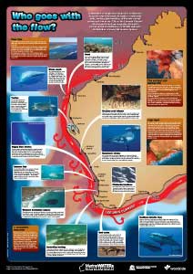 A great flow of tropical water pushes southwards along the edge of Western Australia's continental shelf, sending giant swirling eddies into coastal waters and out to sea. This is the Leeuwin Current - the longest boundary current in the world, and an enormous influence on the life cycle and distribution of many marine species in Western Australia. Download this poster from the Marine WATERs (Western Australian Teacher Education Resources here. Free registration is required.