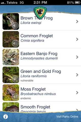 Smartphone applications like Frog Log (pictured left, from the Tasmania Parks and Wildlife Service) allow the community to contribute their observations as part of scientific research. In this example, the community reports frogs they see or hear around Tasmania. Note: a Redmap Smartphone App is on its way!