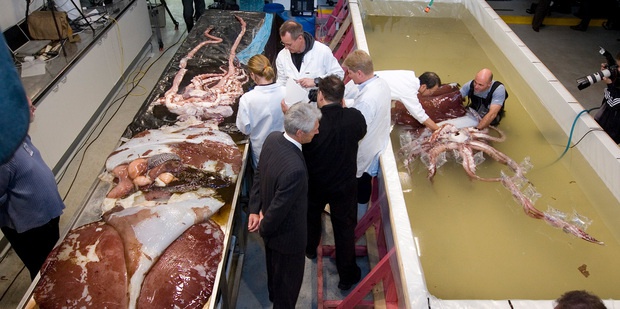 Scientists at the Te Papa museum are hoping a colossal squid now in their possession is a male - making an already rare find an extraordinary one, writes the New Zealand Herald. Read the full story here.
