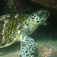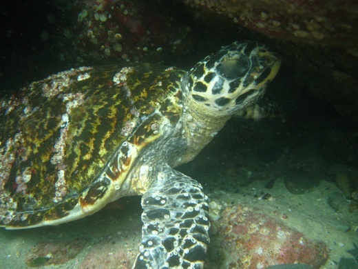 Too warm to swim? (Photo: Redmap member Anita Toland spotted this sleepy Hawksbill turtle near Forster NSW)