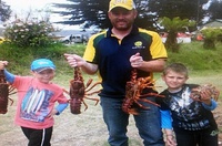 Police officer and Redmap member Christopher Lovell, pictured left with his kids, especially loves to fish Macquarie Harbour in Strahan. His favourite fishes to snag and eat are flounder and blue grenadier. After 24 years of angling, he's noticed that flathead is harder to catch in the Dentrecasteux Channel. He remembers one of his largest catches: a 50kg sevengill shark. He logged an angel shark on the Redmap website.