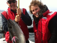 This 45kg butterfly mackeral was caught by Graeme Brownbridge off the coast of Devonport (his son is pictured in the trophy shot). This is the largest fish Graeme has ever reeled in! The bank officer has noticed a change in fishing techniques during his 30 years on the water: it's now more popular to fish with artificials (plastics etc) than bait.