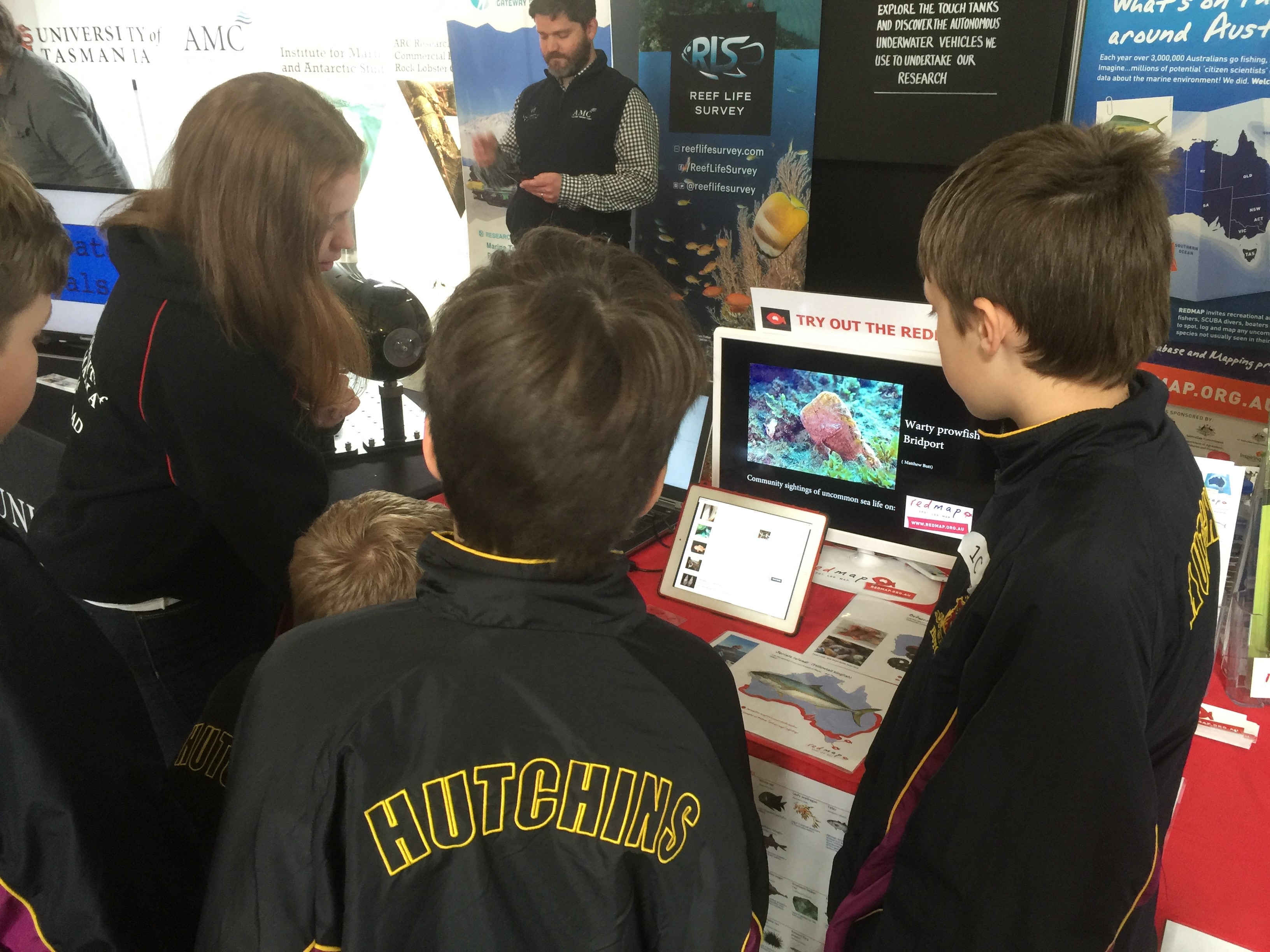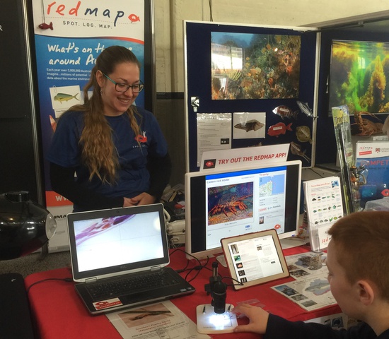 Check out the photos of the Festival of Bright Ideas in Hobart. Kids lined up to become citizen scientists and drive a microscope at the Redmap stall. The Science Week event attracted over 5,000 enthusiastic kids and parents interested in all types of science displays from marine science to robotics, chemistry and wildlife conservation.