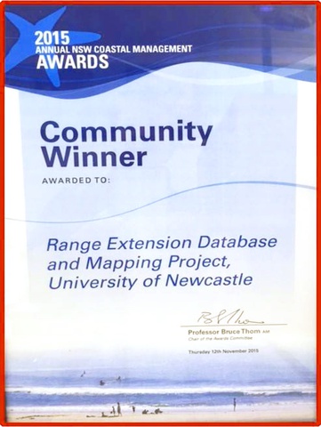 The 2015 Annual NSW Coastal Management Awards were recently announced, and Redmap NSW - run by Dr Natalie Moltschaniwskyj at the University of Newcastle - was awarded Community Winner. It just goes to show the community is aware of Redmap and appreciates the project! Thanks for your help and support, and of course, all the unusual marine observations.