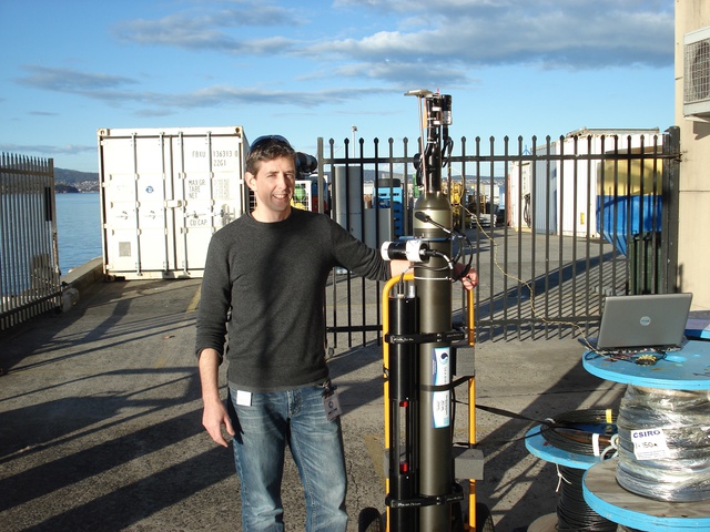 CSIRO's Nick Hardman-Mountford with a BioArgo robotic float (credit: CSIRO).