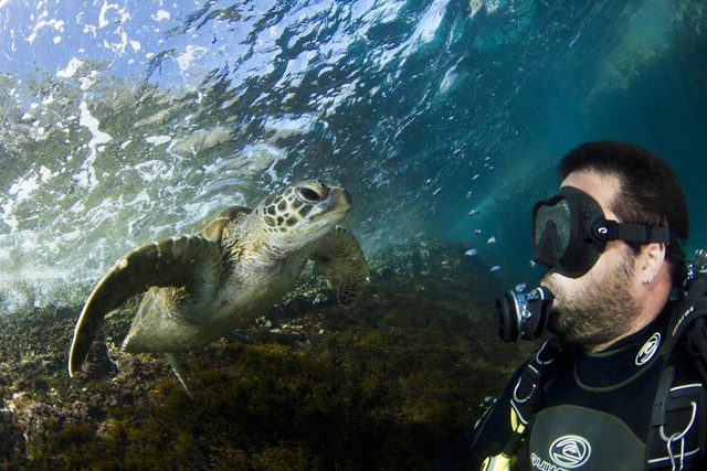 A citizen scientist logs a turtle sighting on REDMAP (photo: Loren Mariani)