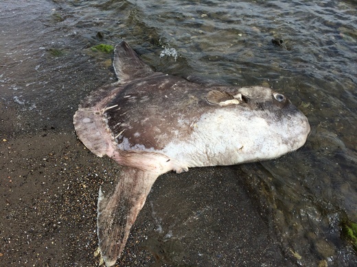 Redmap member Richard Curtis instantly knew the name of this huge, odd-looking fish when he found it washed up on a Hobart beach in December 2014. An ocean sunfish. "I looked them up years ago when I heard stories of Sydney to Hobart Yacht Race vessels suffering keel and rudder damage after hitting them!" he said. Ocean sunfish are the world's heaviest bony fish; weighing in at about one tonne for adults. It is found in tropical and temperate waters but is a rare visitor to the Derwent River in Hobart.