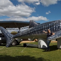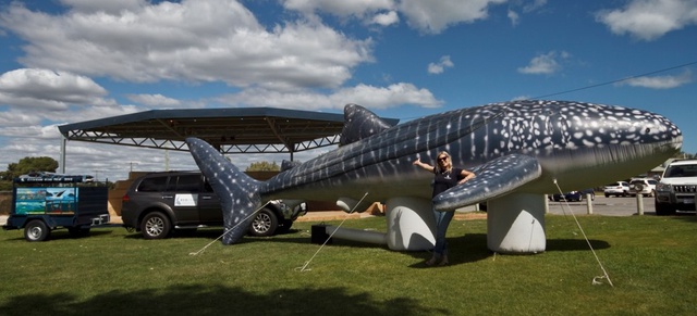 Closer to home, one burning question: where along the Western Australian coast are whale sharks hitching a ride along the Leeuwin Current ECOCEAN Development Manager, Kim Hands embarked on a mission covering over 3,000 kilometres visiting communities from Broome in the north and Albany in the south to talk whale sharks. Along side her every step of the way was her companion "Gulliver" the 10m inflatable whale shark.