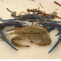 Redmap SA is tracking the Blue Swimmer Crab (Portunus armatus), pictured left with male above female (Photo courtesy of SARDI Aquatic Sciences, South Australia).