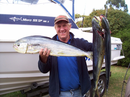 Fish logged on Redmap (pictured): A 5kg mahi mahi (aka dolphin fish, Coryphaena hippurus) caught off St Helens on Tasmania's east coast. This species is usually found in tropical waters!