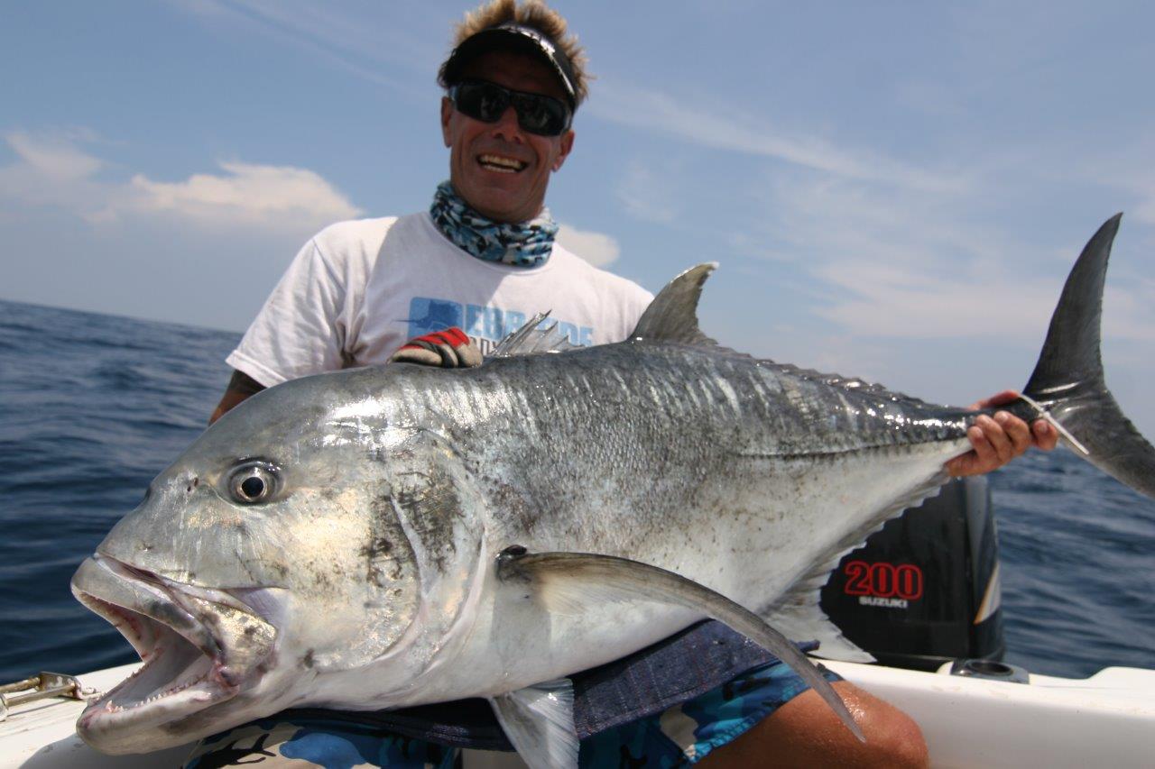 Redmap Victoria member John Cahill from www.ebbtideadventures.com is pictured with a Giant Trevally (Caranx ignobilis). He hasn’t logged a fish on Redmap but is on the look out for uncommon species in Vic: