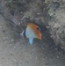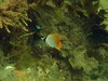 This fish has three unique distinguishing features; the black band that runs vertically across the eyes, the threadlike yellow filament extending from the soft dorsal fin, and the distinctive white, black and yellow banded markings on the body. These markings are white anteriorly and yellow posteriorly with intersecting perpendicular black lines. Read more…