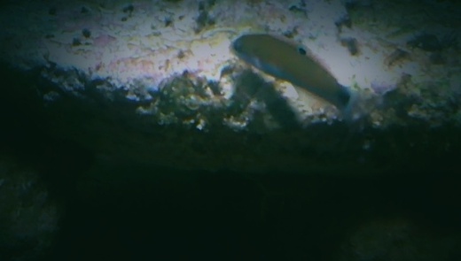 Juveniles have a greenish brown upper body with blue underside. Faint pink and purple irregular bands adorn the face. A black spot is found on the dorsal fin and another near the base of the tail. Caudal and anal fins are transparent. Adults have a green to blue body with bright pink bands in irregular patterns on the face. The caudal fin is yellow in the centre, darker on the edges and moon shaped. The pectoral fins are elongated, pink in the centre and fringed in blue. Scales have faint pink edges. Some individuals have pink markings along the dorsal fin tips. Read more…
