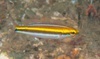 Pointed snout with a small mouth. Juveniles have broad longitudinal stripes along the body that break up into multicoloured lines with growth. Adults have a blue stripe along the base of the dorsal fin; a yellow stripe from behind the eye that finishes as a black spot on the caudal peduncle (where the tail fin attaches). Tail in adults with a long yellowish-brown filament. Three bluish stripes across the snout, with yellow in between. Read more…
