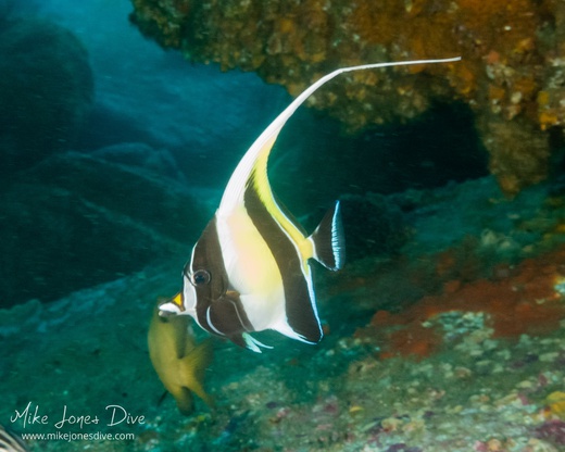 One of numerous Moorish Idols spotted around Blue Fish point. Mostly in pairs.