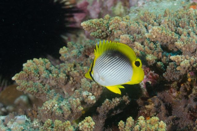 Chaetodon ocellicaudus (Spot-tail Butterflyfish)