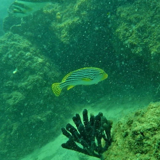 Juvenile oblique-banded sweetlips (~30 cm), filmed in Moreton Bay off Amity Point, Minjerribah/North Stradbroke Island on 12 April 2023.