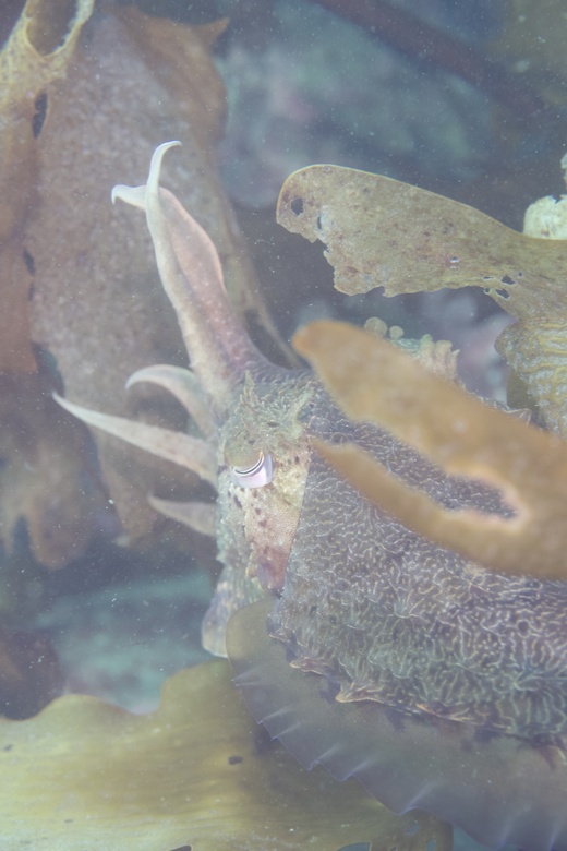The Australian giant cuttlefish is the largest cuttlefish species in the world reaching a total length of up to 1 m and a weight of 5 kg. Males are larger than females with accentuated marginal arms. Males also have the ability to exhibit different colour patterning depending on the circumstance (e.g. for breeding or defence). Read more…