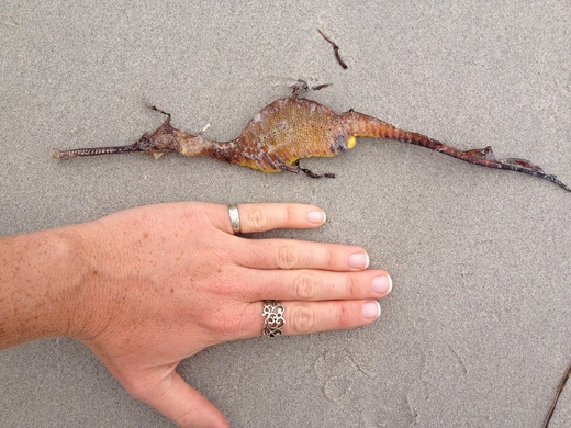 Found during low tide after a very windy 24 hours. Lots of sea grass and algae washed up on shore.