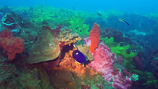 Body is black with a vertical white "keyhole shaped" marking behind the head and pectoral fins on both sides.This marking is how the species obtained it's common name. Dorsal and anal fins are large and can overlap the caudal fin making the fish seem oval in shape. Anal fin is yellow along the margin. A thin blue line running along the posterior edges of the dorsal fin, the entire edge of the caudal fin and through the centre of the anal fin develops as the fish matures. Read more…