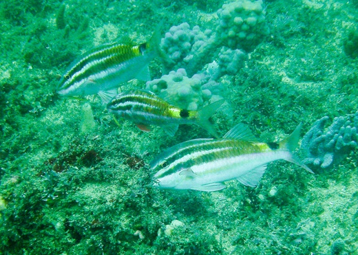 Black saddle goatfish, seen as a small school of small juveniles approx 8.