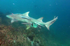 Pale yellowish brown shark with broad head, blunt snout and similar-sized dorsal fins. Dorsal surfaces vary from uniform pale yellow to light brown or grey. Ventral surfaces whitish. No conspicuous fin markings. Blunt snout. Slender, erect, smooth-edged upper teeth. Read more…