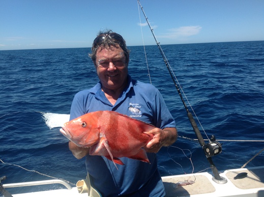 Very distinctive fish in the juvenile and young adult stages. Three dark red bands cross the body vertically. One runs diagonally forward from the front of the dorsal fin, another from the middle of the dorsal fin and the third runs diagonally backwards from the rear of the dorsal fin. In large adults the bands disappear and the fish becomes a bright red. Read more…