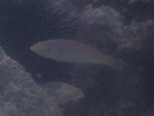 The brokenline wrasse undergoes colouration changes as it grows, matures and changes sex. It transitions through two phases – initial (females) and terminal (transition between female and male). Juveniles have a pinkish-grey upper body with a white belly. A thick horizontal black line running along the body from the mouth, through the eye and to the tail separates the upper and lower body colours. A thin blue line begins to form underneath the eye. All fins are transparent. Fish in the initial phase are predominantly pink with a white belly. The black line from the juvenile phase has become less bold and been replaced with a flecked blue and black line. The snout section is yellow. The lower portion of the body may have faint black spots. Read more…