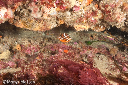 A boxfish with a concave snout and a high arched back. Males and females differ in colour – males are orange with a few white bands on the body. In females and juveniles, the white bands are outlined in black. Read more…