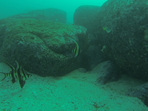 Distinctively shaped fish with a shield shaped body, pointed mouth and elongated dorsal fin. Colouration is also a distinguishing feature with black and white vertical bands across the body. A yellow area with faded edges is found in the centre of the body and towards the tail. A bright yellow to light orange marking crosses the tubular mouth. The elongated dorsal fin is white and decreases in relative length as the fish grows. Eyes are high on the face. In older fish lumps form above the eyes. Read more…