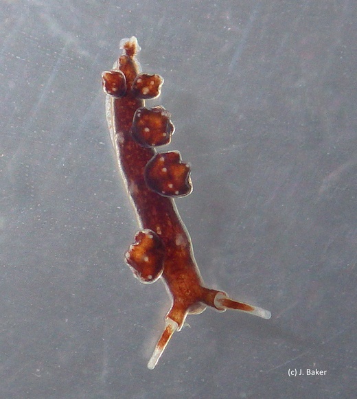 Doto pita Doto pita, 4mm long. Three cerata are missing. Found in a Caulocystis sample collected under permit by J. Baker, South Australian Conservation Research Divers, at Ardrossan SA, September 2015. Tweet Depth 1m