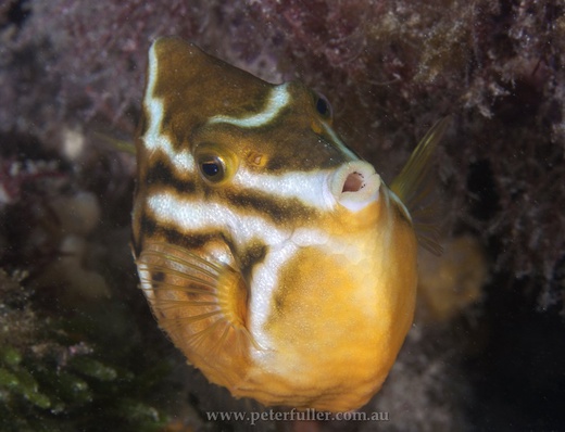 A boxfish with a concave snout and a high arched back. Males and females differ in colour – males are orange with a few white bands on the body. In females and juveniles, the white bands are outlined in black. Read more…