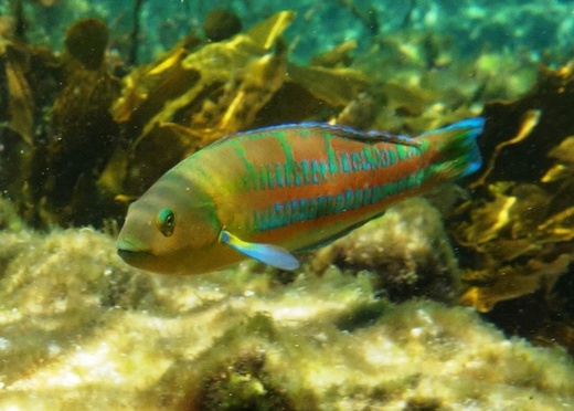 Thalassoma trilobatum (Ladder Wrasse) Ladder wrasse snapped at Parker Point, Rottnest Island on 24/1/2016 Tweet Depth 1m