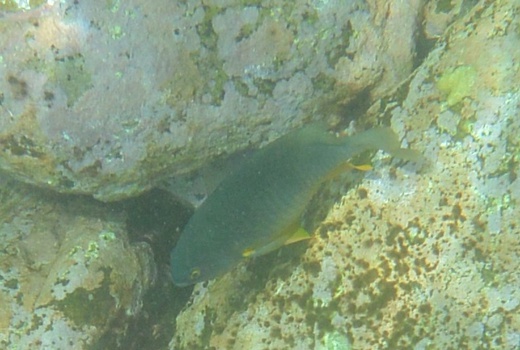 The body is generally brown on the upper surfaces and yellow on the lower areas and towards the head. Anal and pelvic fins are yellow. Tail fin is forked with rounded ends and yellowish brown in colour. The dorsal fin is brown with a vertical yellow band at the rear that fades into a translucent section. Scale edges have a brown mark on the trailing edge. These markings intersect to give the fish a thin diagonally banded look. Read more…