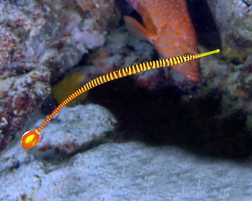 Yellowbanded Pipefish (Dunckerocampus pessuliferus) spotted in Lighthouse Bay, Exmouth on 20/3/18