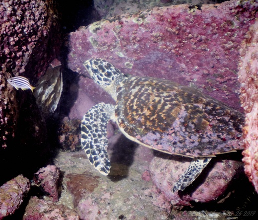 Critically endangered, Hawksbill turtles are named for their prominent bird-like beak. Adults have a brown shell with brown and black patterns. Read more…