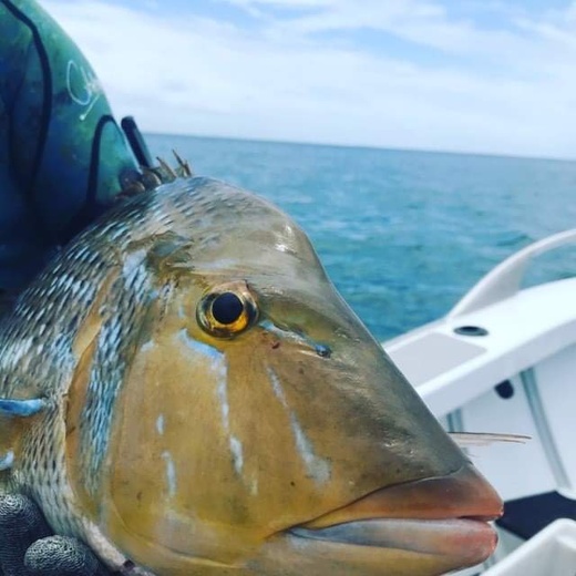 Body colour is golden bronze. Contains blue spots on the upper surface of the body and there are blue bars or lines which radiate from the eyes over the cheeks and snout. Read more…