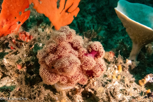 The flooding, storms, and heavy seas in recent months seems to have negatively effected many species including the Cauliflower Soft Coral which now seem harder to find. This was the only small specimen left in a place where 6 months ago they were numerous,.