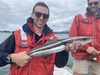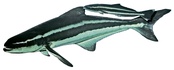 The Cobia is dark brown above, pale below, with two narrow white stripes from the head to the tail base. Large adults have only one stripe. It resembles a suckerfish without the sucking disc on top of the head. Read more…