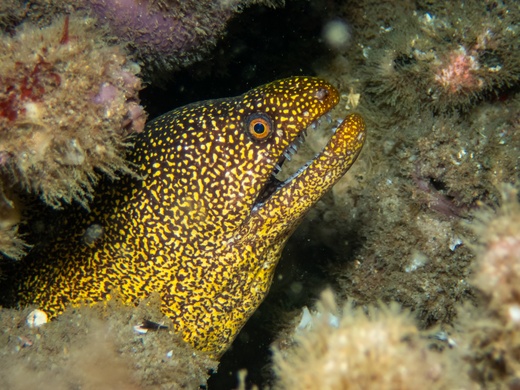 Brown body with small irregular shaped yellow to white spots covering every surface. Some individuals also have small black spots. The body colour gets darker further away from the head due to the presence of more markings. Read more…